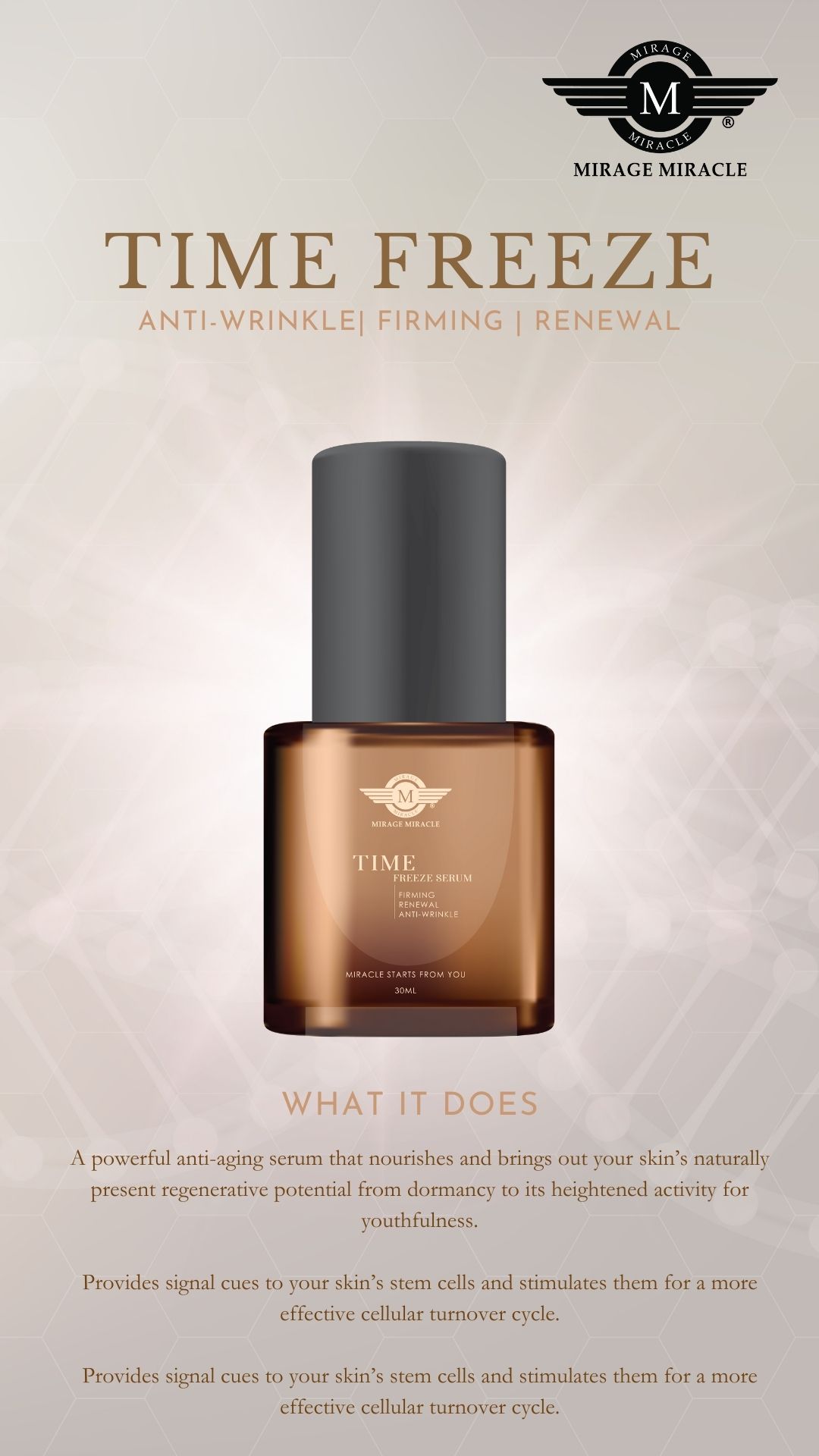 This set includes – Mirage Miracle’s Time Freeze Serum, Super Moisture Cleanser and Collagen Ampoule.